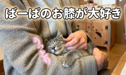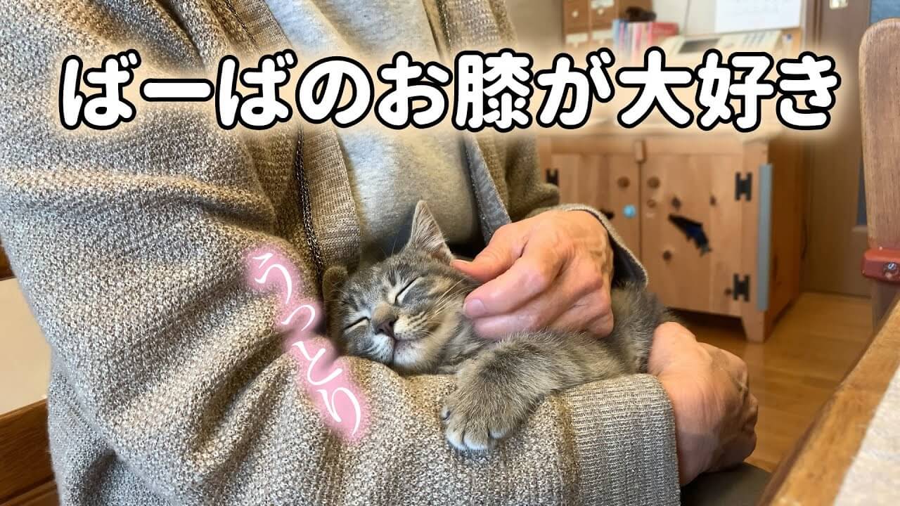ヒザの上でお昼寝するのが大好きな子猫の動画