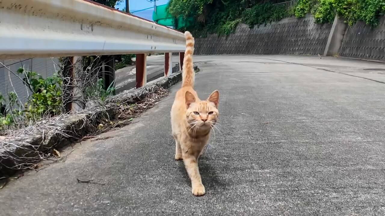 人懐っこい様子で駆け寄ってくるトラネコちゃんのリアクションが可愛かったですし、トラネコちゃんが道案内をするように先行して撮影者さんを導いてくれるシーンが面白かったです。
