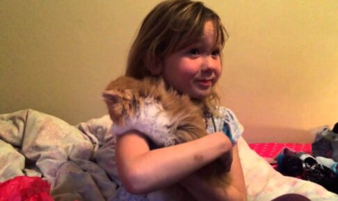 お誕生日プレゼントにまさかの子猫がもらえたことで、幸せいっぱいな女の子でした。きっと最高の誕生日になったはずです。
