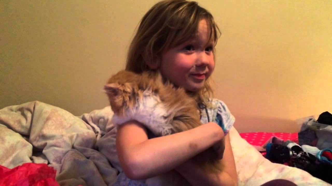 誕生日のプレゼントに可愛い子猫をもらって大興奮な女の子
