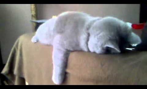 この猫さんはうつぶせのポーズでソファの背に乗りながら、顔をそのままソファに埋めてしまっているのです。
