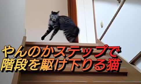 今回ご紹介するのは興奮したまま階段の昇り降りをする猫ちゃんです。