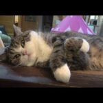 絵画のオブジェの中で昼寝を楽しむ猫ちゃんの動画