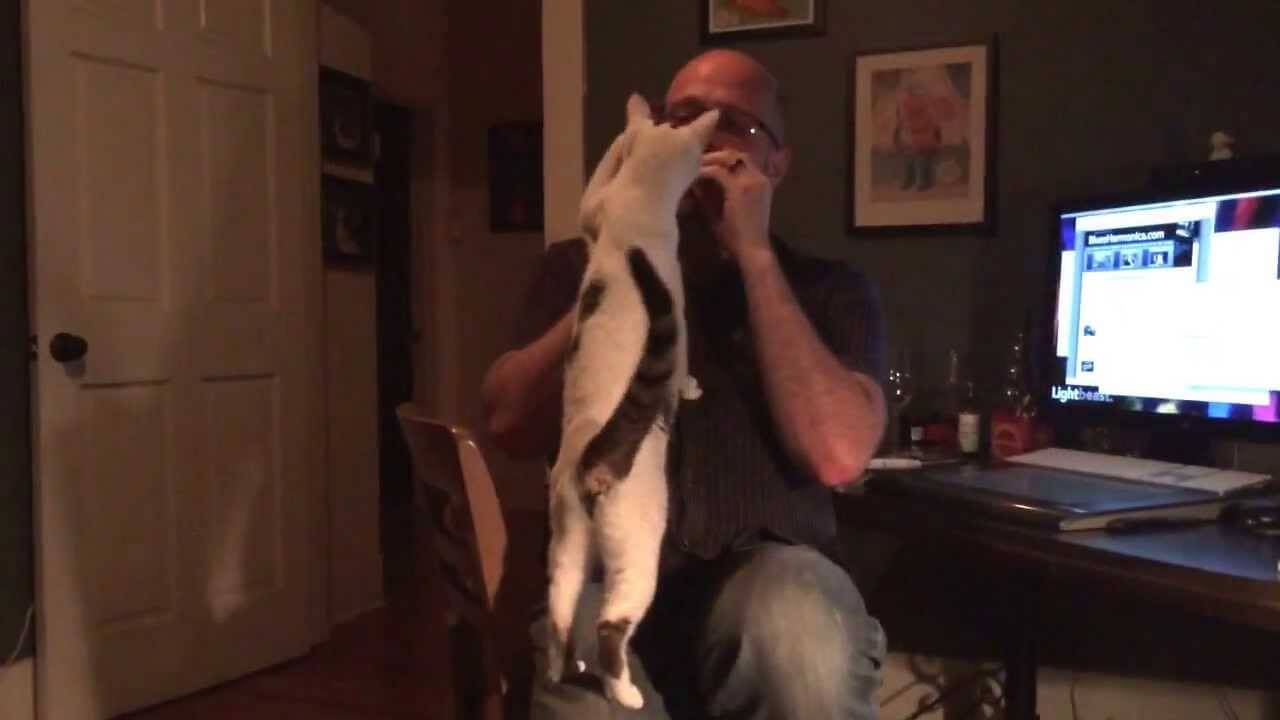 ハーモニカの演奏に合わせて歌う猫ちゃんの動画