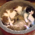 子猫も少しずつ子犬との距離を縮めて、最後には子犬のそばで丸くなって昼寝を始めるまでに心を開いてくれたようです。