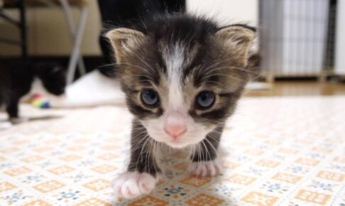 まだヨチヨチ歩きを始めたばかりの子猫姉妹のユメちゃんとチコちゃんです。お腹が空いたようで、お母さんに向かってミルクをちょうだいにゃ〜とお願いしてきます。