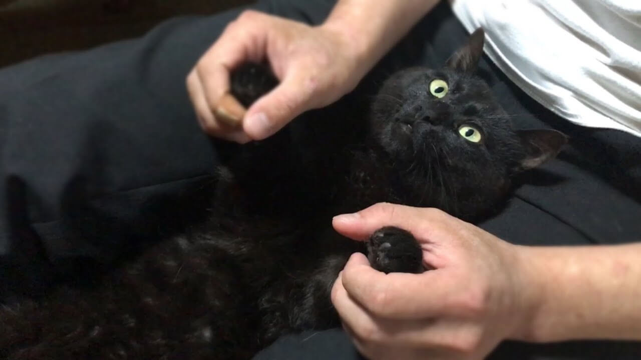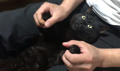 お父さんをマッサージチェア代わりにしてしまう黒猫