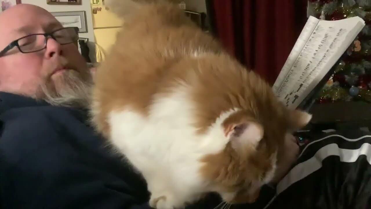 お父さんのお腹の上にどっかり座って甘える猫のババ