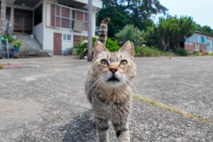 その場でじーっとして大きく膨らんだお腹を抱えながら、周囲をきょろきょろと見回しています。