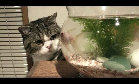 金魚に興味津々な猫ちゃんが可愛すぎる動画