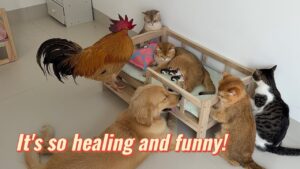 ワンチャンやニワトリが出産直前の猫ちゃんを見守る動画