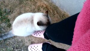 近所の飼い猫さんがめちゃくちゃスリスリしてくれた
