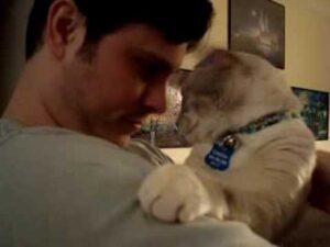 抱っこされて心地良さそうにしている猫ちゃんの動画