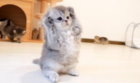 子猫たちは元気いっぱいに部屋のなかを走り回り、あちこちに隠れたり相手の兄弟に攻撃をしかけたりと、楽しそうに遊んでいます。