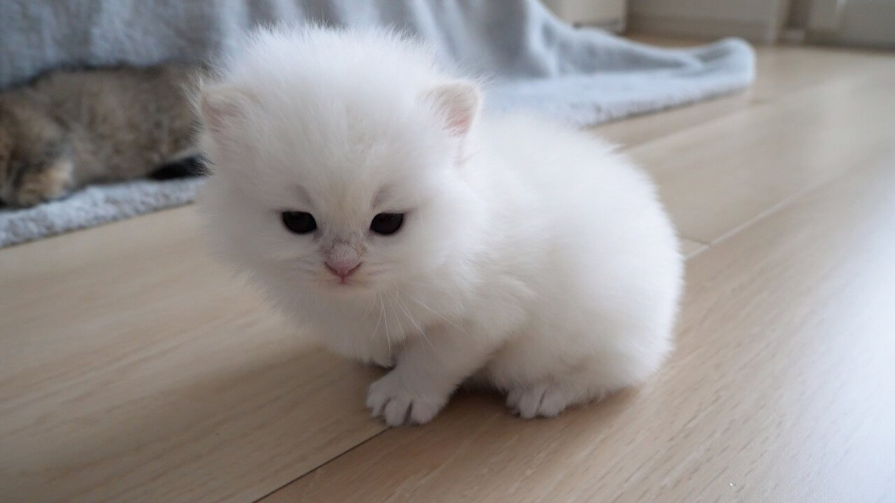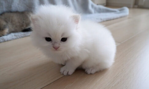 この子猫も、ちょうど独り歩きが上手にできるようになってきた頃のようですが、まだフローリングの上はツルツルなので滑ってしまいます。