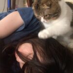 緑のブランケットの上で気持ちよさそうに丸まって眠る三毛猫さん。まるでアンモナイトの化石のようにギュッと丸くなって隙間もないぐらいに丸まっています。