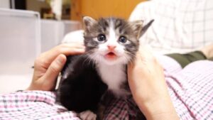 子猫の電池切れは突然に。お腹を撫でたらあっという間に寝落ちしました