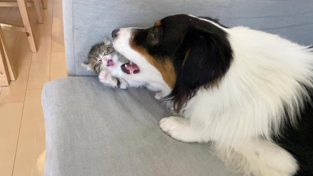 子猫とワンコのじゃれあいっこが迫力ありすぎた