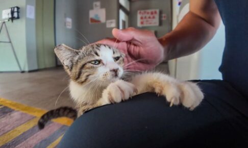 たっぷりと撫で回してあげたら、ようやく満足したのか子猫はホテルのロビーの奥の方へのんびりと移動していきました。