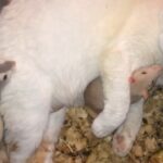 そっと頭を撫でてあげると、嬉しそうに声のでないニャーのお口をしています。しばらくはこのロビーのフロアで子猫と戯れていた主さんです。