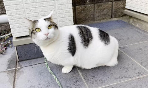 お父さんが豆大福のことを呼ぶと元気よく返事をしてすぐに階段を駆け降りていきました。どうやらお父さんは豆大福を玄関の外の散歩に連れ出そうとしているようです。