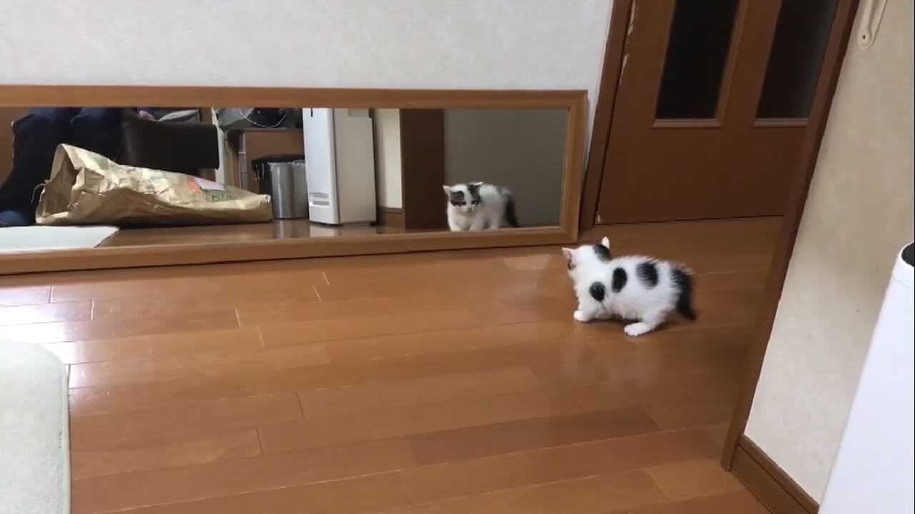 続いて他の子猫ちゃんが鏡の前へとやってきます。