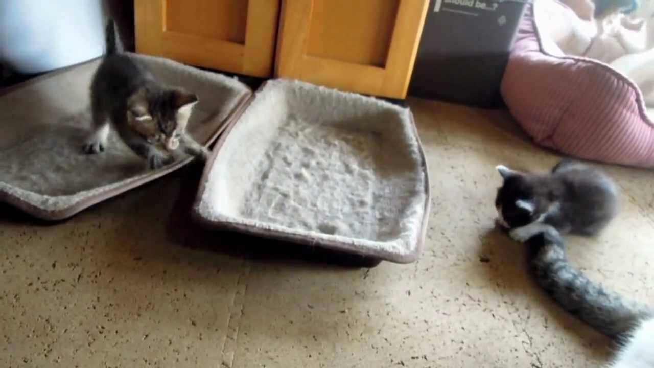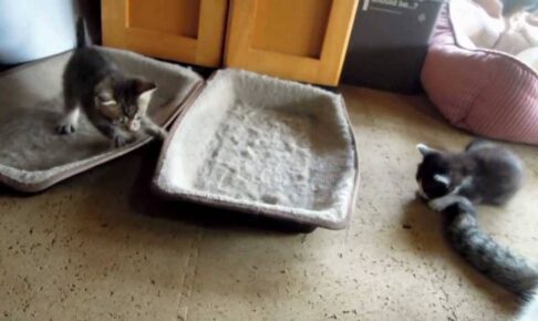 子猫ちゃん達は寝床の中ではしゃいでいました。