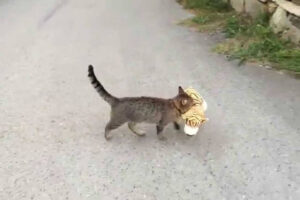 雨がシトシトと降っていてあいにくの天気です。主さんが農協事務所の前で雨宿りをしていると、猫さんたちもみんな集まってきて雨宿りをはじめました。