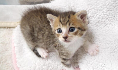 寝床からヨタヨタしながら飛び出してきたらすぐに飼い主さんの膝の上に乗っかってきて甘え始めます。