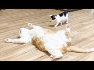 【踏まれても動じない!】何度も「子猫に踏まれる」先住猫の愛と忍耐!究極の優しさ!