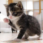 その証拠に、赤ちゃん猫のうちの1匹がワンコのほうへ、グイグイと近づいてきたりしています。