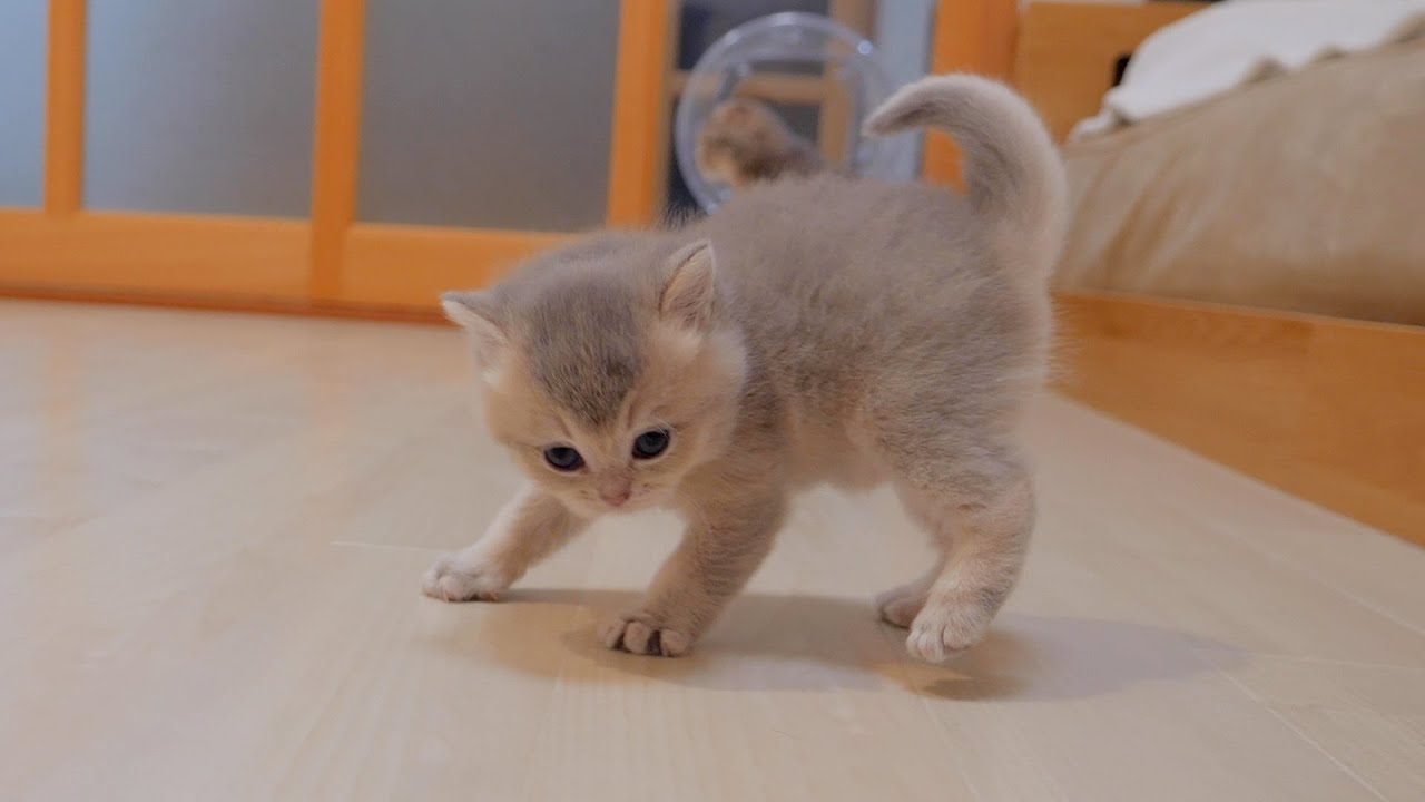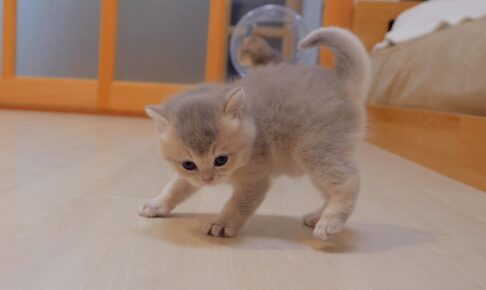 ひと遊びしたら今度は飼い主さんの足にゆっくりとよじ登ってきた子猫。可愛い顔をして、ふらふらしながらも一生懸命に登ってくる姿にキュンキュンします。
