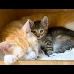 でも直接ファウンテンの水には口をつけず、周りに飛び跳ねた水滴をぺろぺろと舐め取って水分補給をしています。喉を潤わしたらベッドに戻ってきて兄弟と一緒にまったり昼寝の準備を始めました。