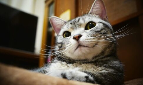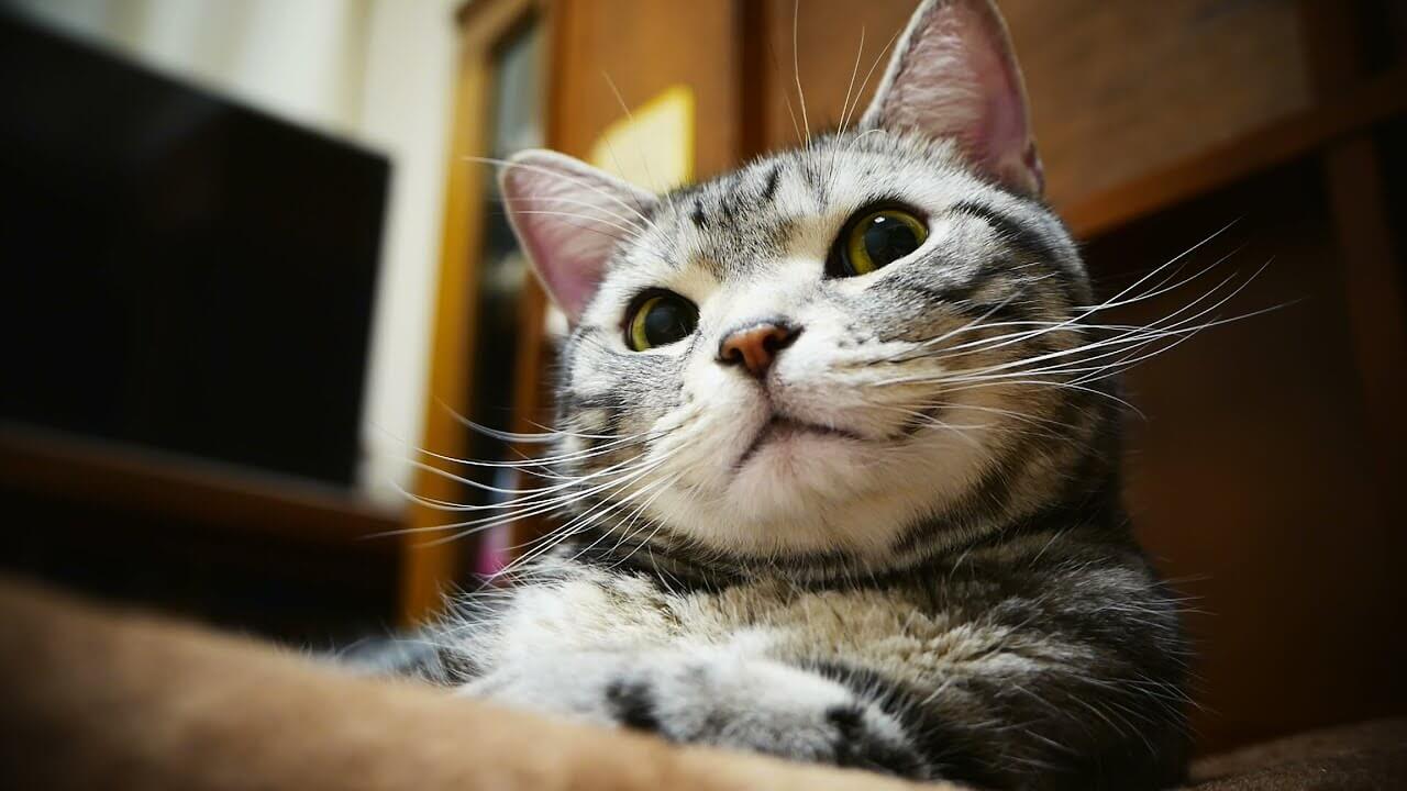 めちゃくちゃハンサムなアメリカンショートヘアの猫さんのドアップから動画は始まります。