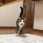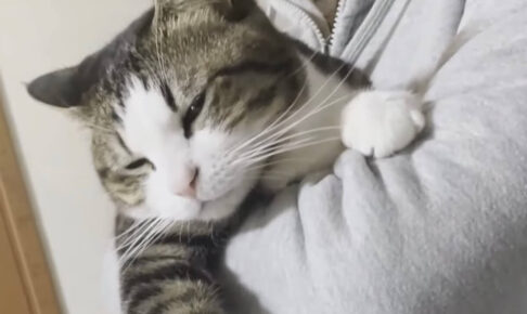 大好きなお父さんに抱っこされて大満足なお顔をしているオデコは、まるで子猫のような甘えた顔つきになっています。