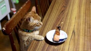 焼き鮭に興味ナシな猫さん