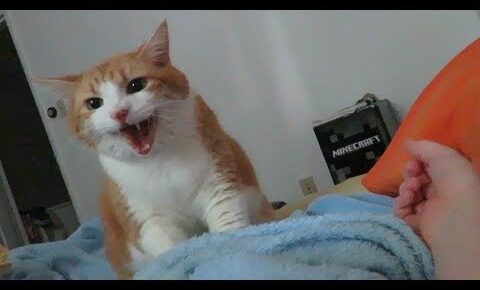 ベッドに上がった猫は、主さんに対してまるで何かを訴えるかのように、低いハスキーな声でミャー!と何度も大きな声で鳴き始めます。