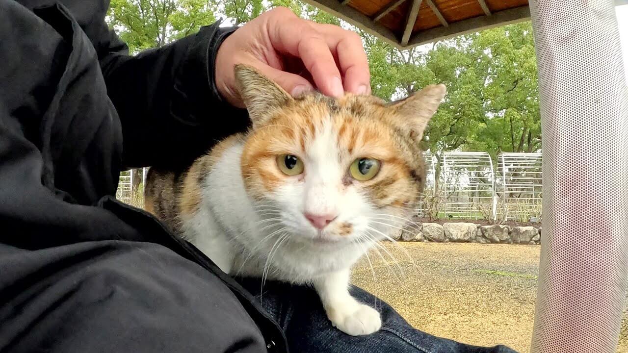 撮影者さんがベンチへ座ろうものなら、膝上へ移動して身体をスリスリ。