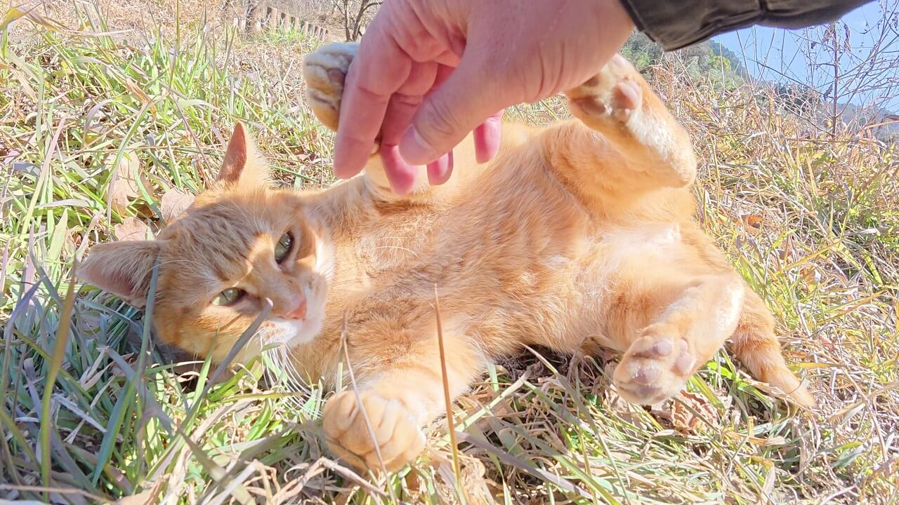 甘え上手な茶トラ猫くんと公園でイチャイチャ