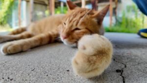 日陰でまったりくつろぐ猫さんのあんぱんみたいな前足がキャワ
