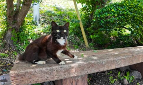 主さんが帰ろうとベンチから立ち上がると、もう帰っちゃうのにゃ?と名残惜しそうな表情をしていました。