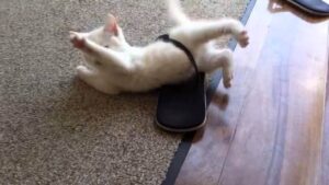 ビーサンにハマってしまってジタバタしている子猫