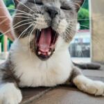たくさんモフってもらってすっかりリラックスしたおでこは、ぎゅいーんと大きな伸びをして長〜くなっています。