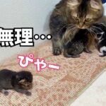 母猫は子猫ちゃん達を愛でてあげ、母子猫達が仲良く過ごす微笑ましいシーンを見せてくれるのでした。