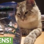 そしてベッドの上にすぐに登って、より近いところから赤ちゃん猫たちの匂いを嗅ぎ、体温を感じとても幸せそうな表情になっています。