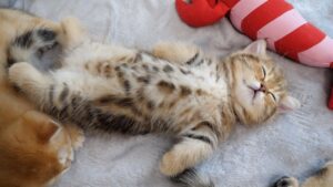 【天使の寝顔!】先住猫の隣で「笑いながら」幸せそうに眠る子猫!究極の癒やし添い寝!