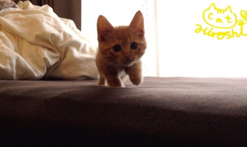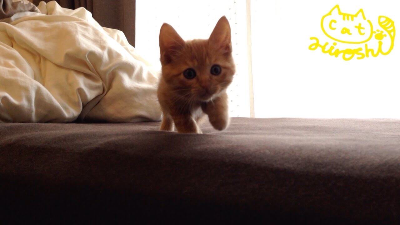 飼い主さんがこちら側から、子猫のひろしのことを呼んでいるようですが相変わらずひろしの動きは激オソです。
