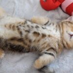 いつのまにかワンコのそばで寝ていた子猫までもがワンコのお腹の上で気持ちよさそうに伸びて寝ています。