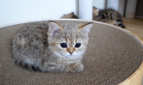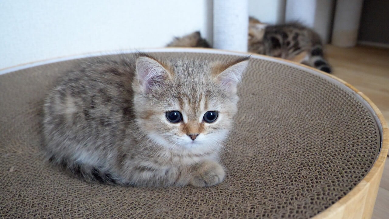 今回ご紹介するのは爪とぎ器の上から離れようとはしない子猫ちゃんです。