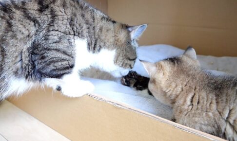 今回ご紹介するのはパパ猫と赤ちゃん猫のご対面シーンです。